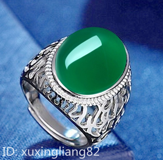 - 極希少 ♪早い者勝ち 指輪 メンズ 大粒 緑玉髓 ヒスイ メッキ 透かし彫り リング アクセサリー 誕生日 ギフト フリーサイズ