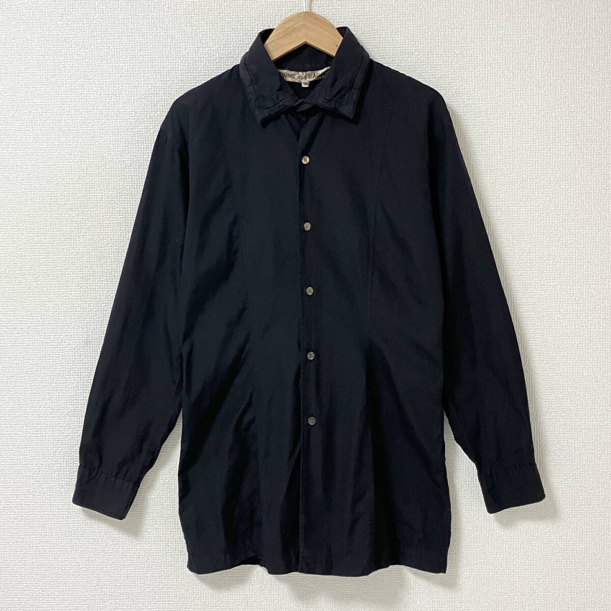 - 80s 90s COMME des GARCONS ワイヤー入 後染め 切替 長袖 ロング シャツ 無地 ブラック Mサイズ コムデギャルソン VINTAGE archive 5040156