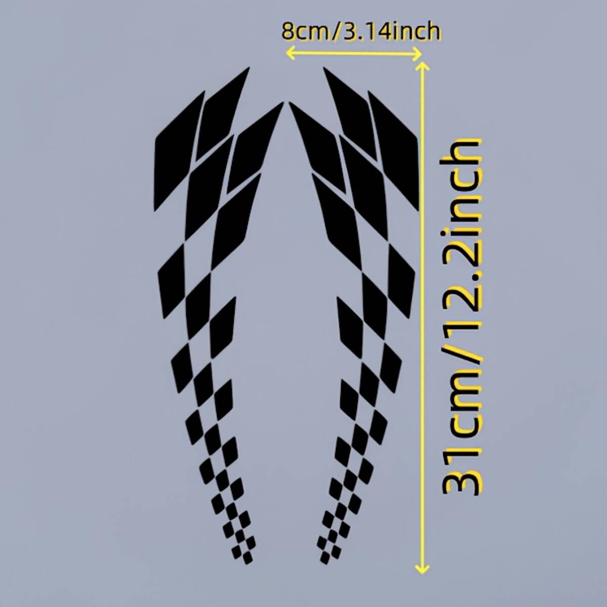 > 2枚セット デカール チェッカーボード ステッカー 車用 31cm ブラック 黒 ビニール シール 3D 立体 バイク オートバイ 外装 飾り t8433