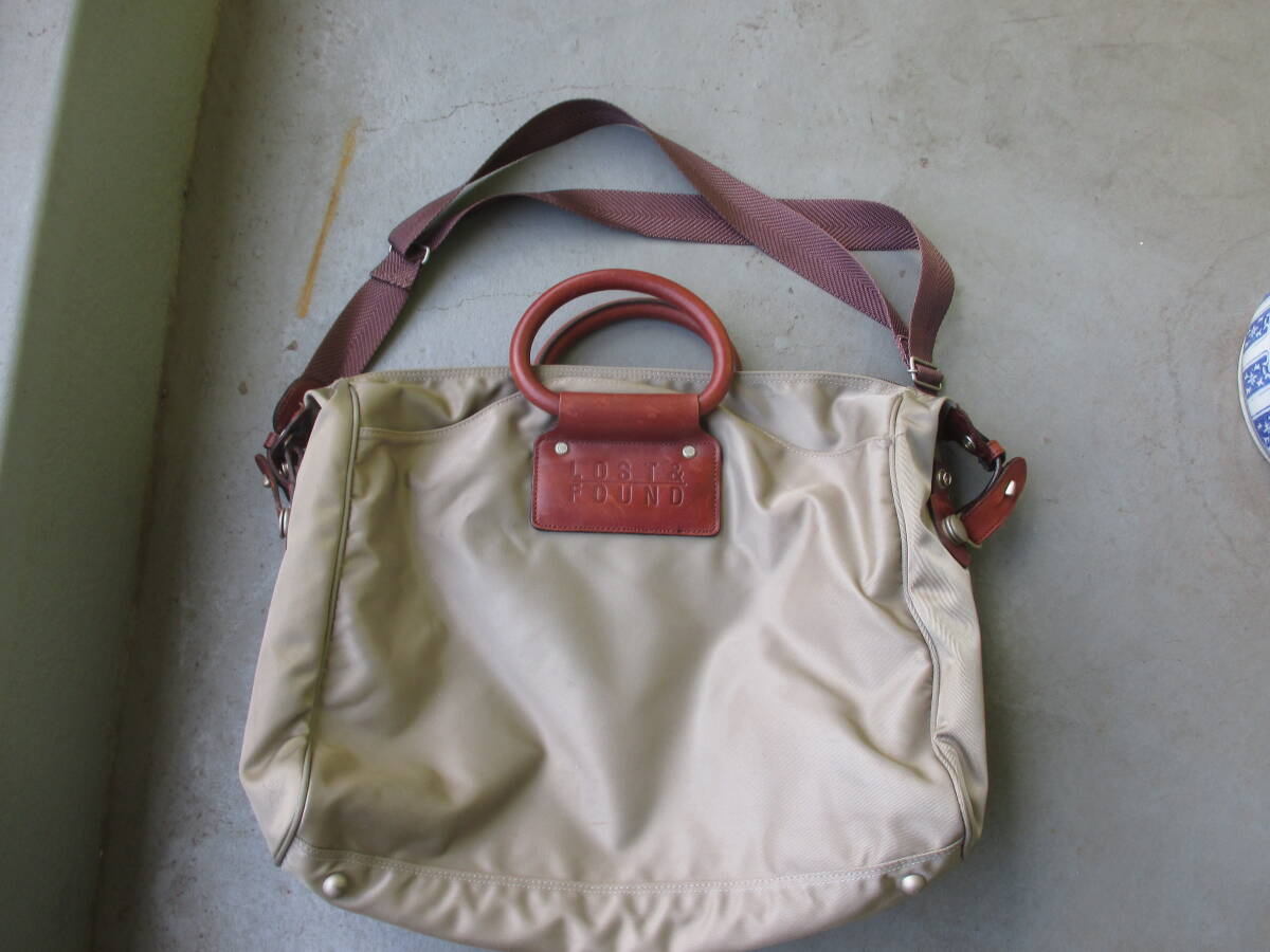 > ★ボストンバッグ 2WAY MARUEM LOST&FOUND 多用性 サイドP3 内P4 取り外しP1 日本製 横43×高33×マチ15.5㎝ 重さ約1.2㌔ 現状品