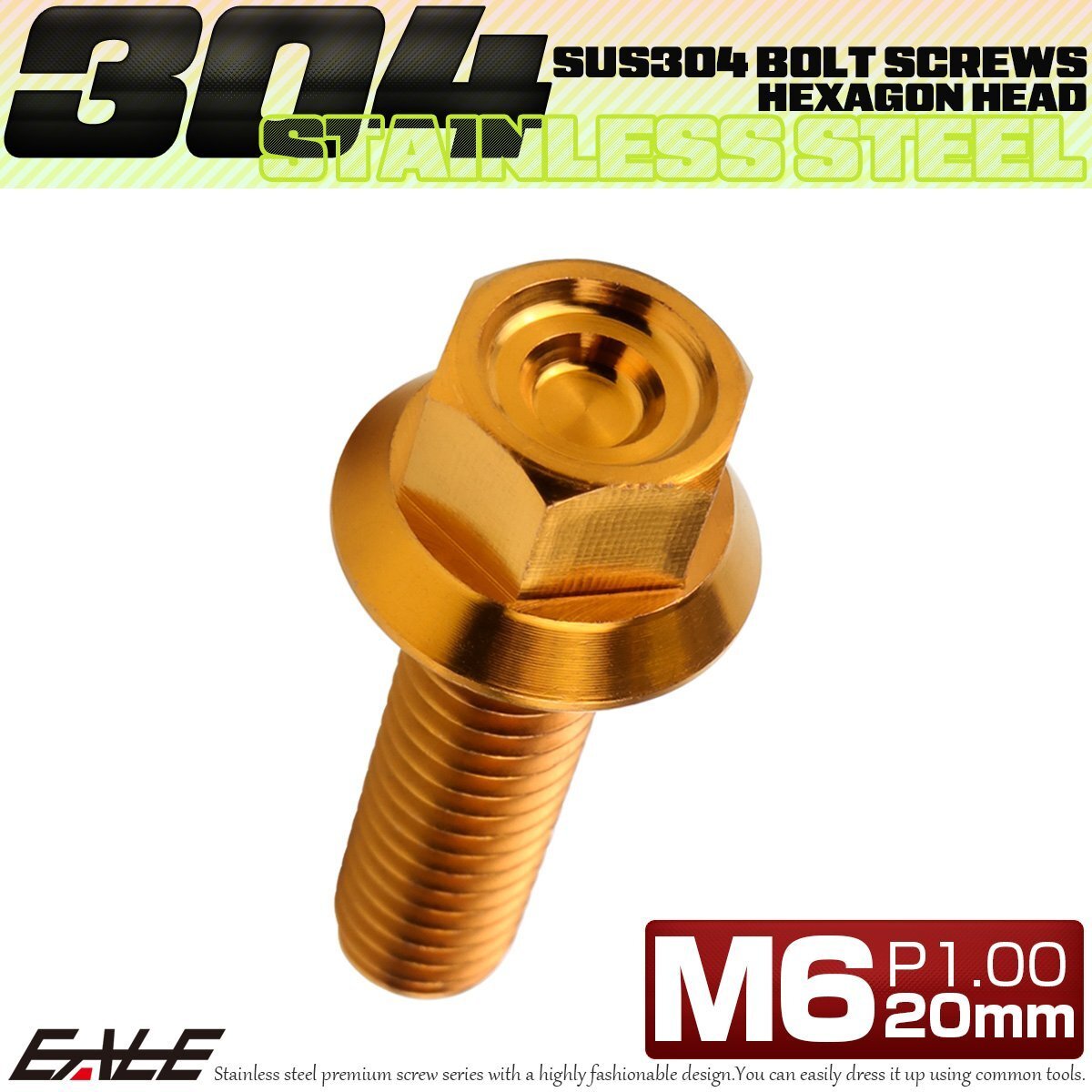> M6×20mm P1.00 フランジ付き 六角ボルト ヘキサゴンヘッド CNC SUS304 ステンレス ゴールド TB1273
