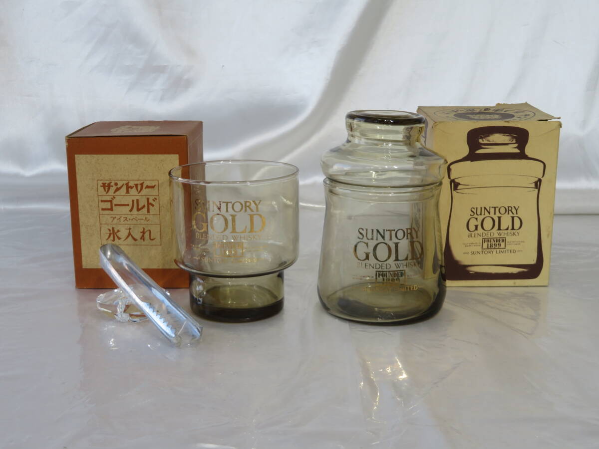 > 【ガラス】 サントリー ゴールド SUNTORY GOLD おつまみポット・氷入れ アイスペース ノベルティ 2点 保管現状品