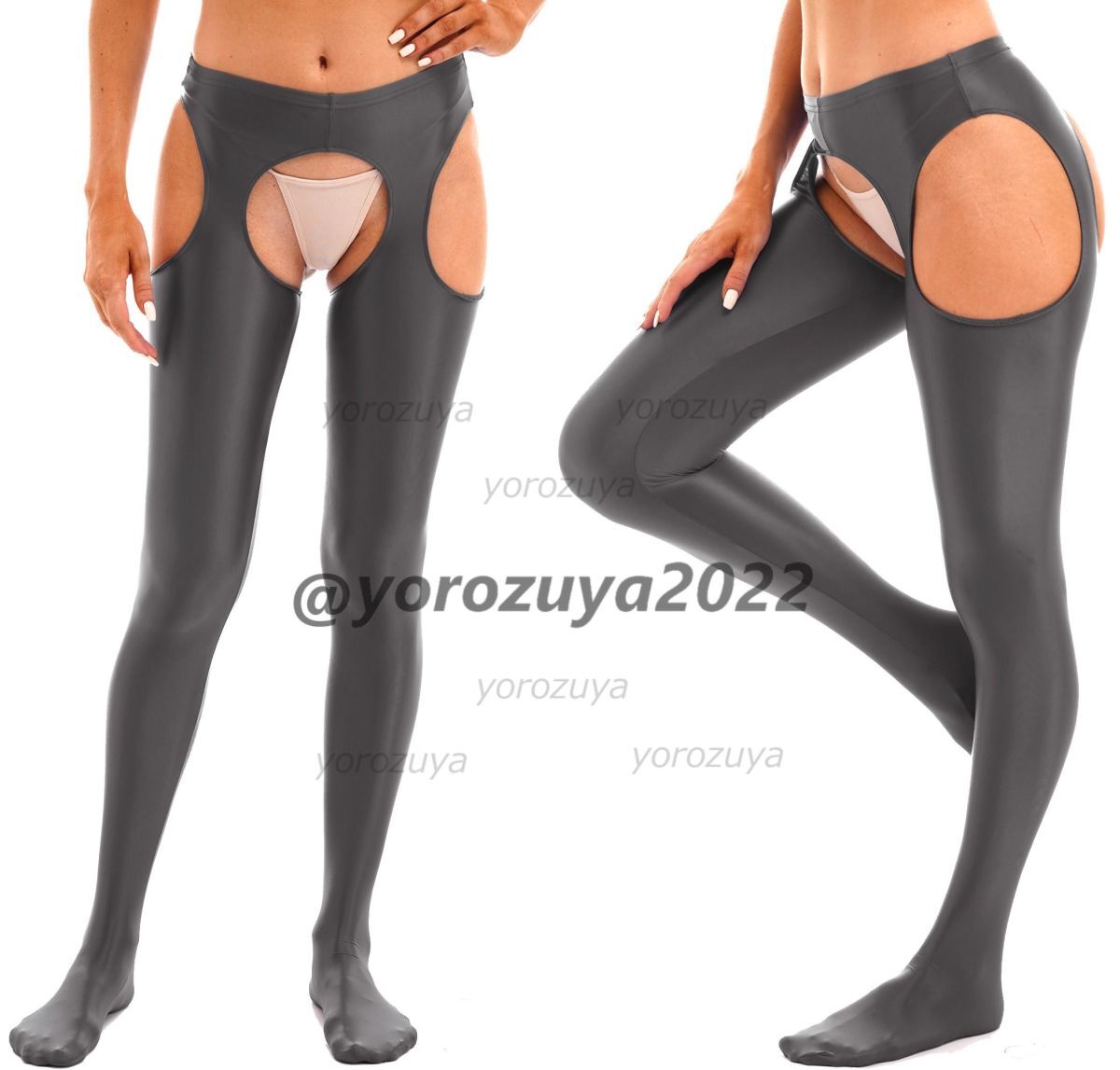 > 184-268-26 光沢 ツヤツヤ オープン サイドカット Toeタイプ【グレー,XLサイズ】レディース 女性 レギンス コスプレ セクシー パンツ .3