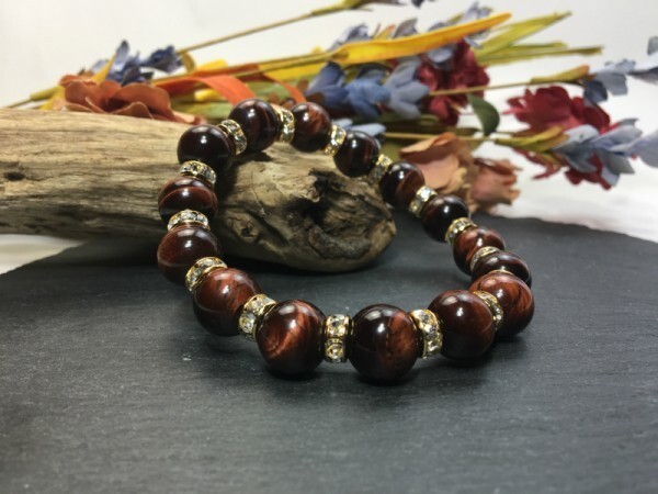 > パワーストーン ブレスレット レッドタイガーアイ 12mm 天然石ブレス ゴールド 開運 金運 浄化 数珠ブレス メンズ 男性