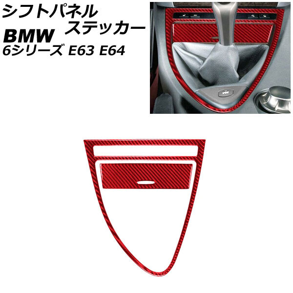 - シフトパネルステッカー BMW 6シリーズ E63/E64 2003年10月~2011年01月 レッドカーボン カーボンファイバー製 左ハンドル用