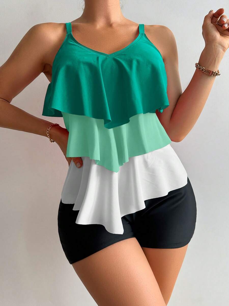 - レディース 水着 ビキニセット レディース カラーブロック ベスト キャミソール タンクトップ 夏用