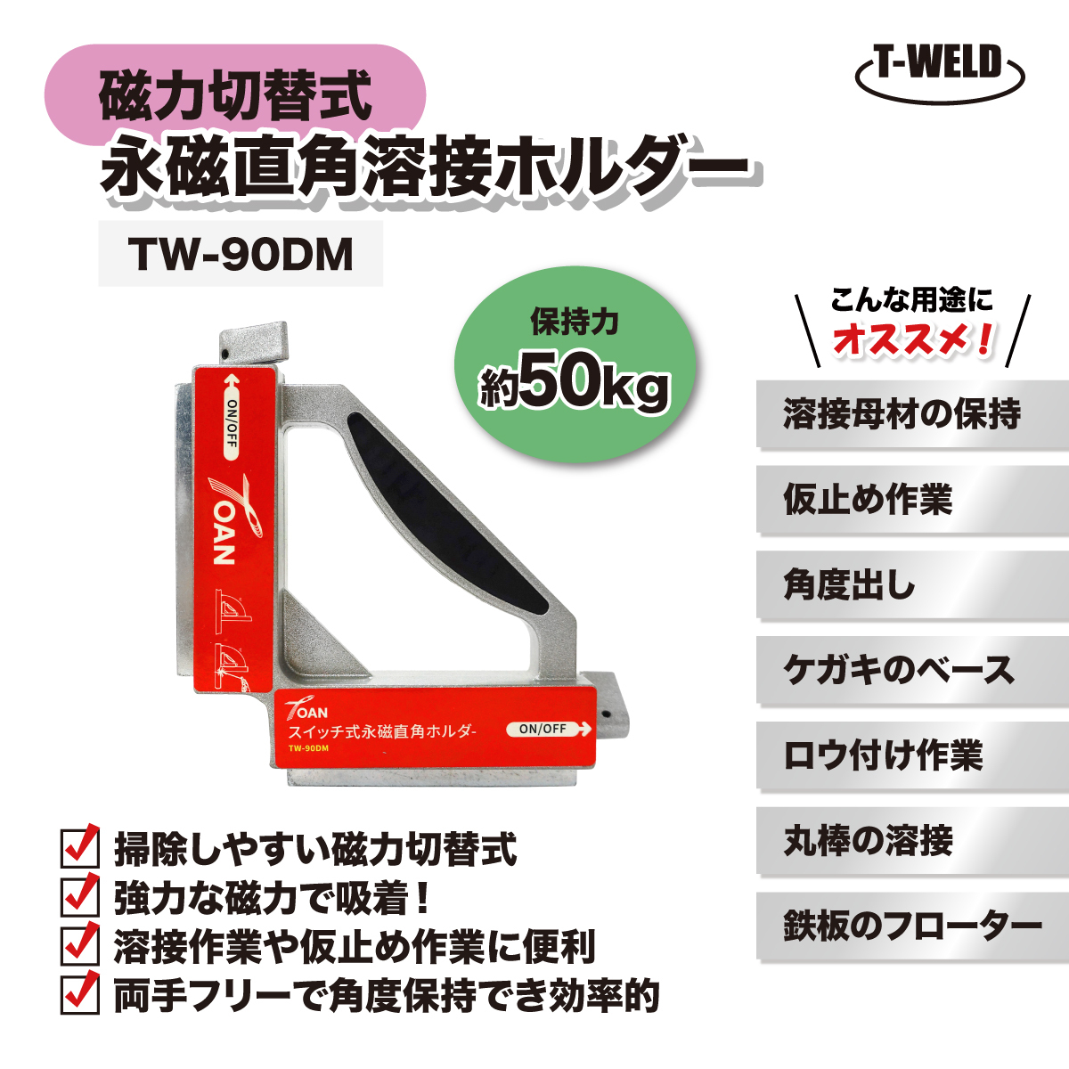 - 永磁直角溶接ホルダー 磁力切替式 TW-90DM 保持力50kg 1本 インボイス対応領収書発行可