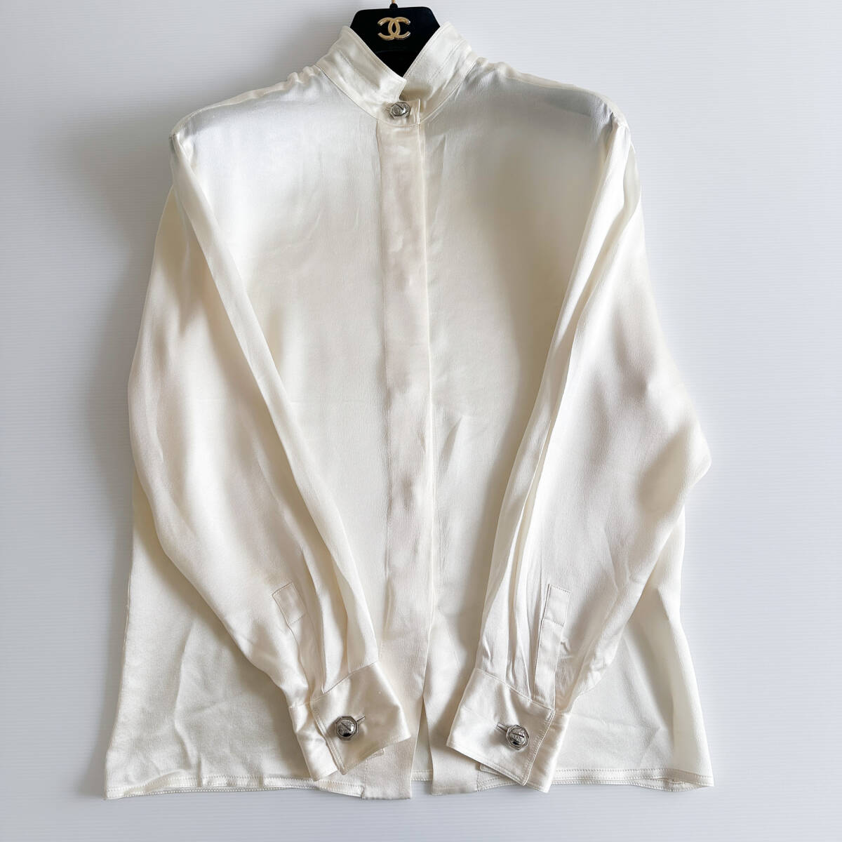 - Gianni Versace ジャンニ ヴェルサーチ / シルク 比翼 シャツ ブラウス アイボリー イタリア製 絹 オフホワイト