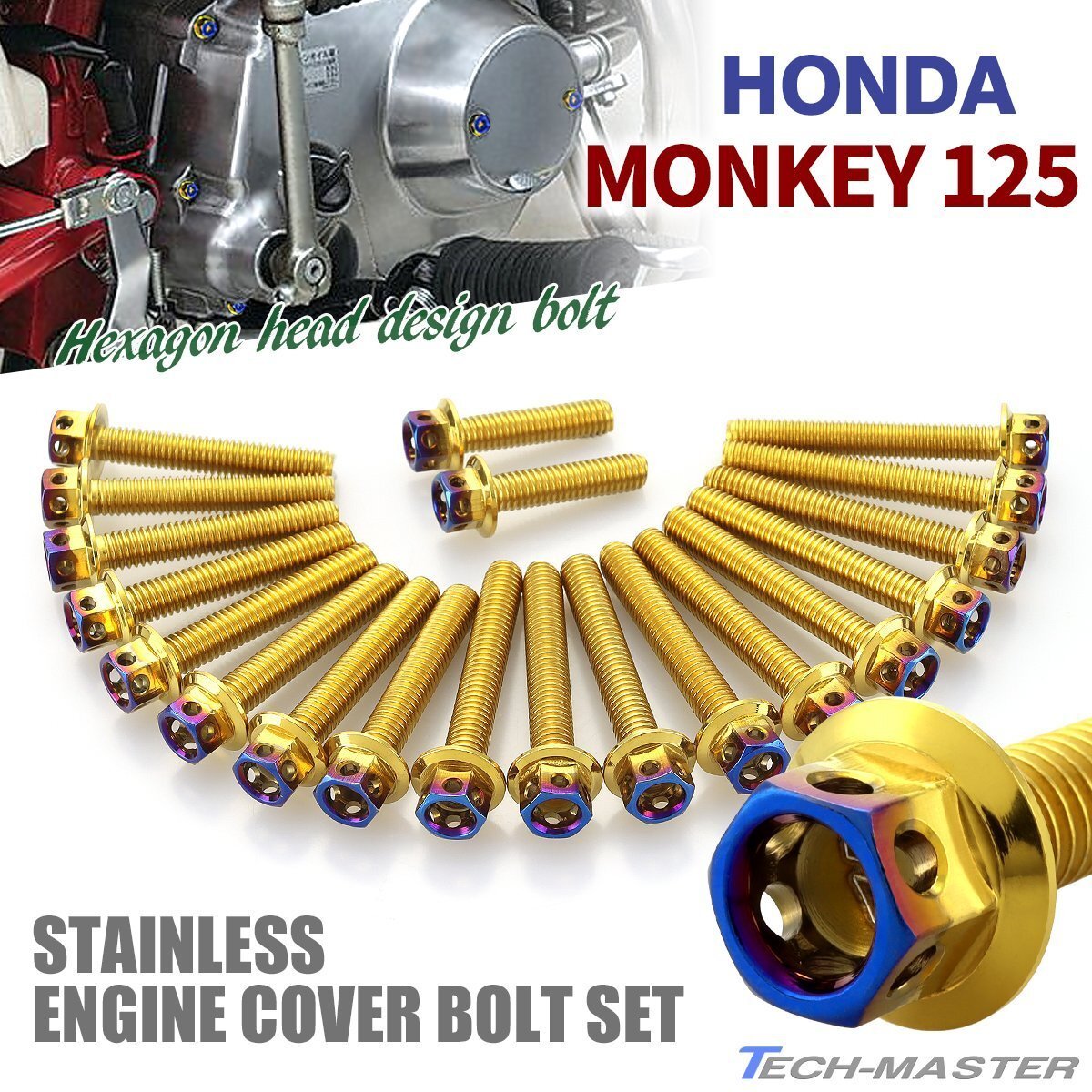 - モンキー125 JB02 エンジンカバーボルト 20本セット ステンレス製 ヘキサゴンヘッド ホンダ車用 ゴールド×焼きチタンカラー TB6260