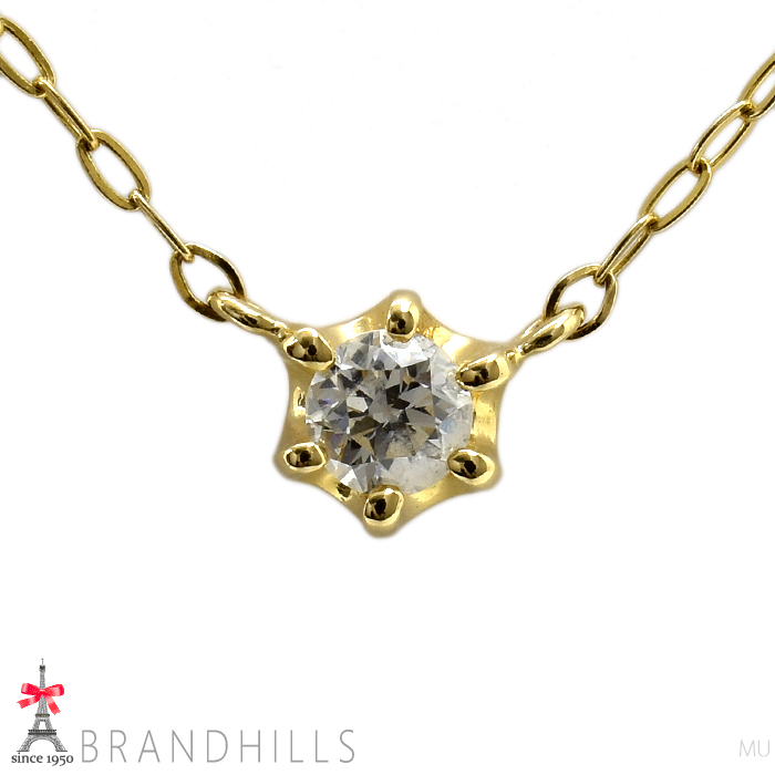 - 4℃ ヨンドシー ダイヤモンド 一粒 ネックレス K18金 750YG イエローゴールド 極美品