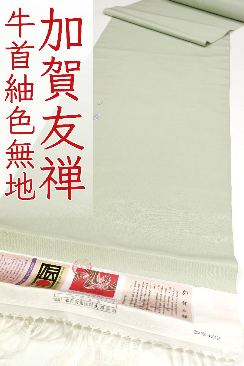 > 和遊館 即決kta2929 老舗 問屋 別注品 本加賀友禅 松任いち × 石川県指定無形文化財 白山工房 手挽き糸 牛首 紬 無地 着尺 お仕立て付き