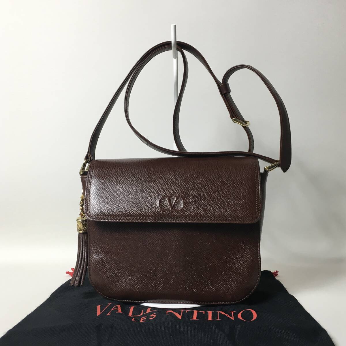 - 78B337|ヴァレンティノ ショルダーバッグ レザー ダークブラウン