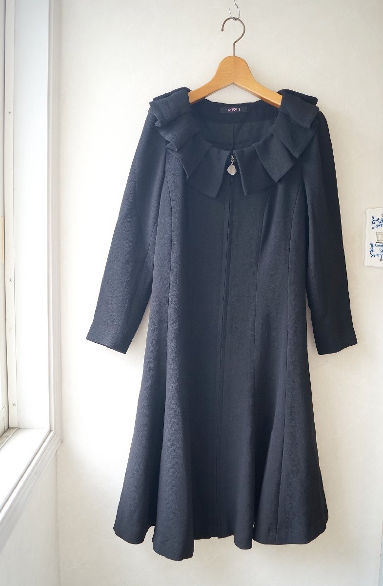 > ★MISS J ミス ジェイ *上品♪フロントジップ プリーツ襟 ワンピース /黒 40* 古着のgplus広島 2509t2