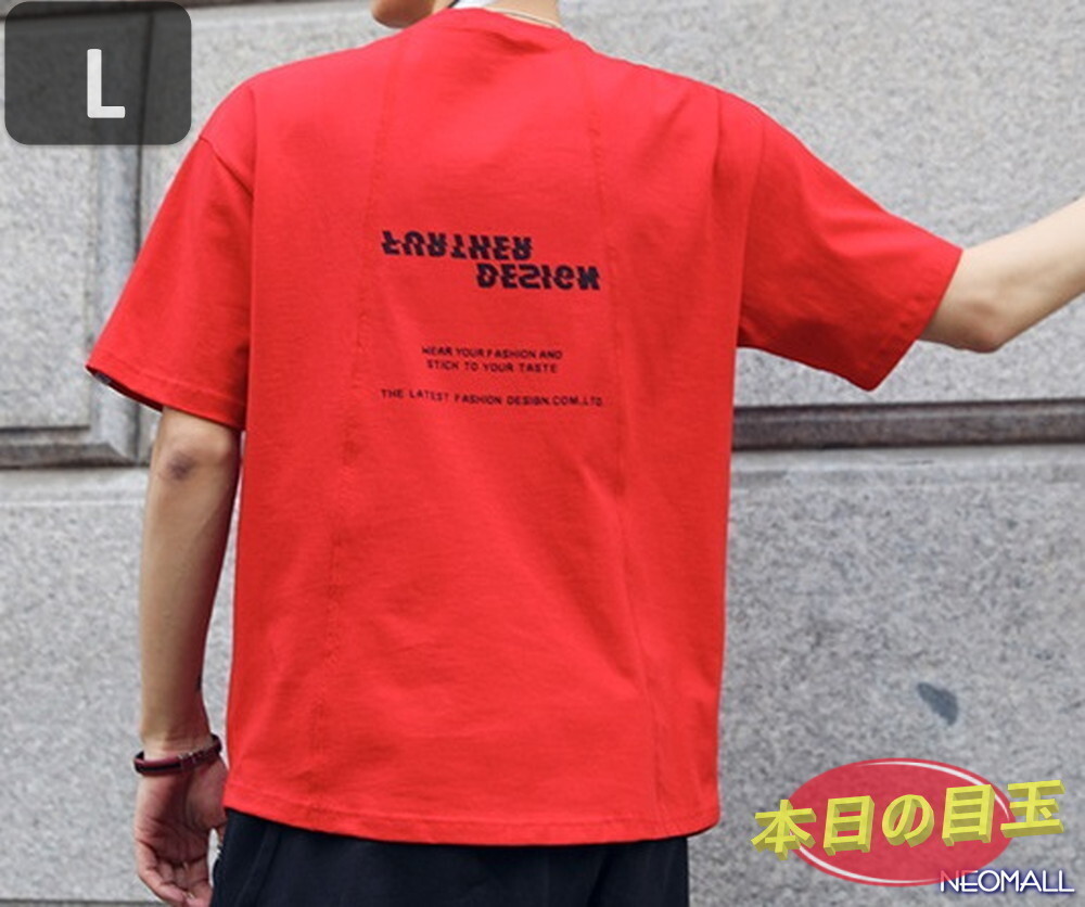 > 本日のお買得 ☆ 丸首 半袖 Tシャツ【472】 レッド Lサイズ トップス シャツ シンプル イラスト デザイン 春夏
