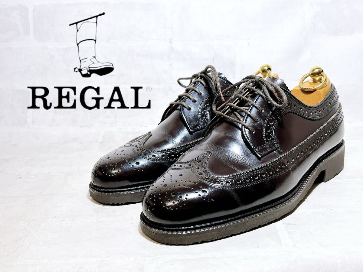 > 2回着【極美品】REGAL リーガル 高級 ウィングチップ ビジネスシューズ 本革 レザー 茶 24EEcm メンズ 紳士靴
