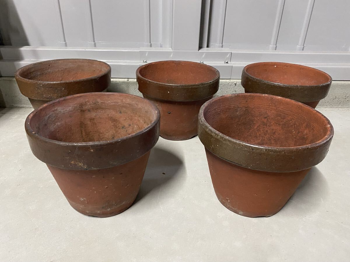 - 植木鉢 素焼き 6号 5点セット 観葉植物 多肉植物 山野草 草花 花 雑木 松盆栽 松柏 盆栽 ガーデニング 深鉢 盆栽鉢