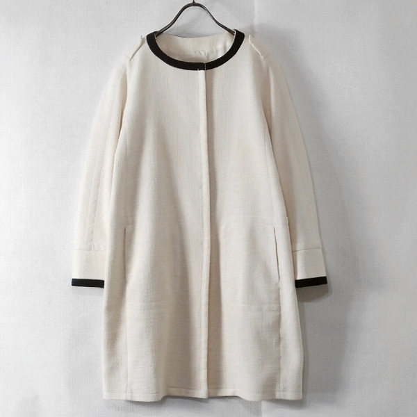 - S’MaxMara エスマックスマーラ / ツイード調 ノーカラーコート アイボリー パイピング
