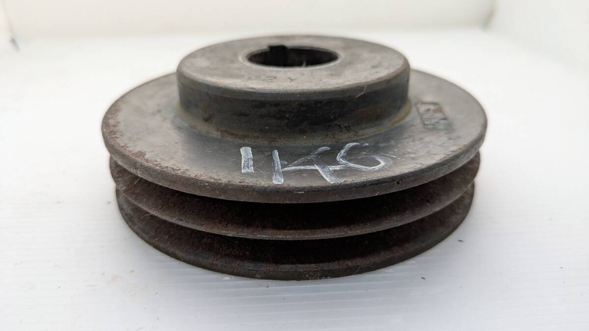- No.1146●2連プーリー●ベルト幅8.5mm●軸径Φ30mm●鍵幅7mm●外径Φ126mm●全体厚み43mm●発動機用●エンジン用●ネジ付き