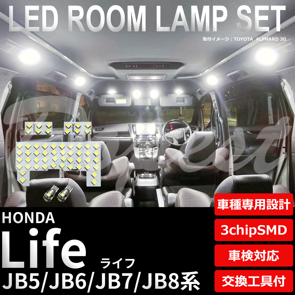 > ライフ LEDルームランプセット JB5/6/7/8系 室内灯 6500K純白 専用設計 車検対応 車内灯