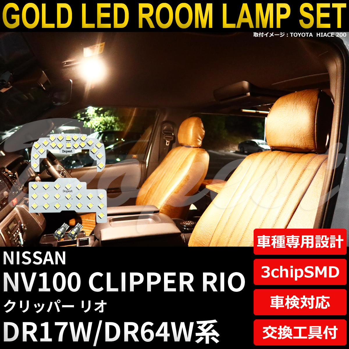 > NV100 クリッパー リオ LEDルームランプセット DR17W/DR64W系 ハイルーフ車専用 室内灯 3250K電球色 専用設計 車検対応 車内灯