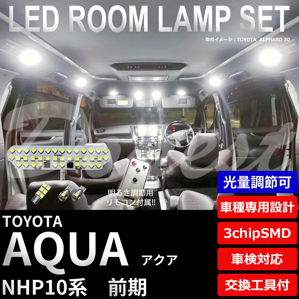 > アクア LEDルームランプセット NHP10系 前期 調光式 室内灯 6500K純白 専用設計 車検対応 車内灯