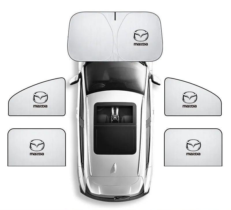 > マツダ MAZDA ロゴ付サンシェード5点セット 磁石式車用カーテンUV保護&熱遮断 収納袋付車用日焼け防止フロントサンシェード社外品