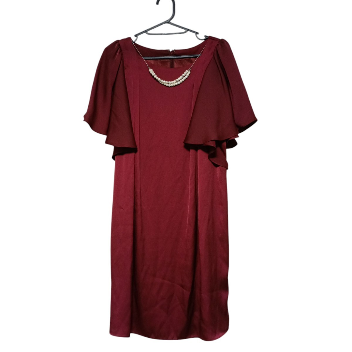 - 美品☆アサクラ☆ネックレス付きパフスリーブ切り替えデザインパーティードレスワンピース☆サテン 半袖