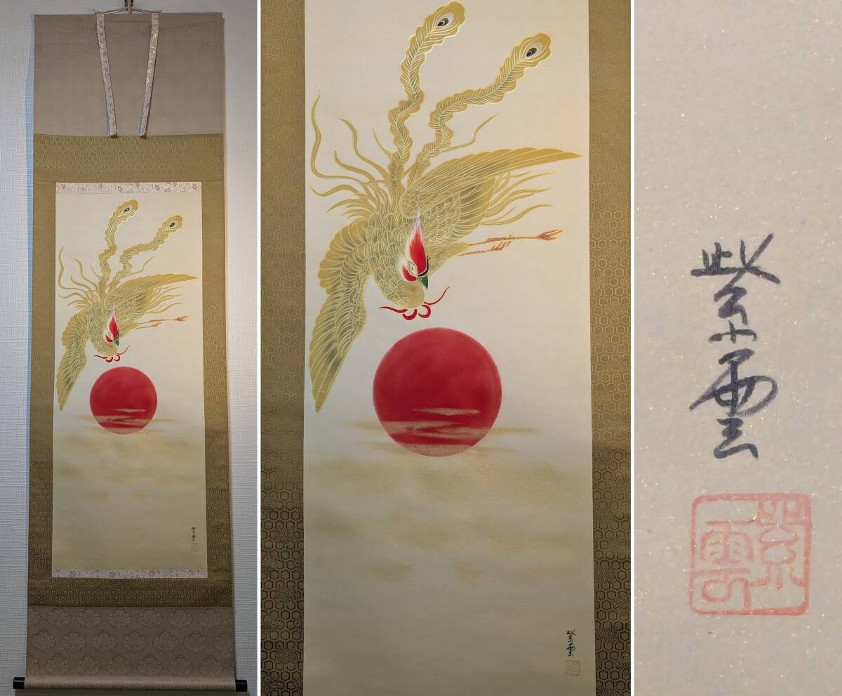 - 【真作】掛軸 鳳凰旭日図 日本画 吉祥掛軸 瑞鳥吉祥 古美術 合箱入 U38