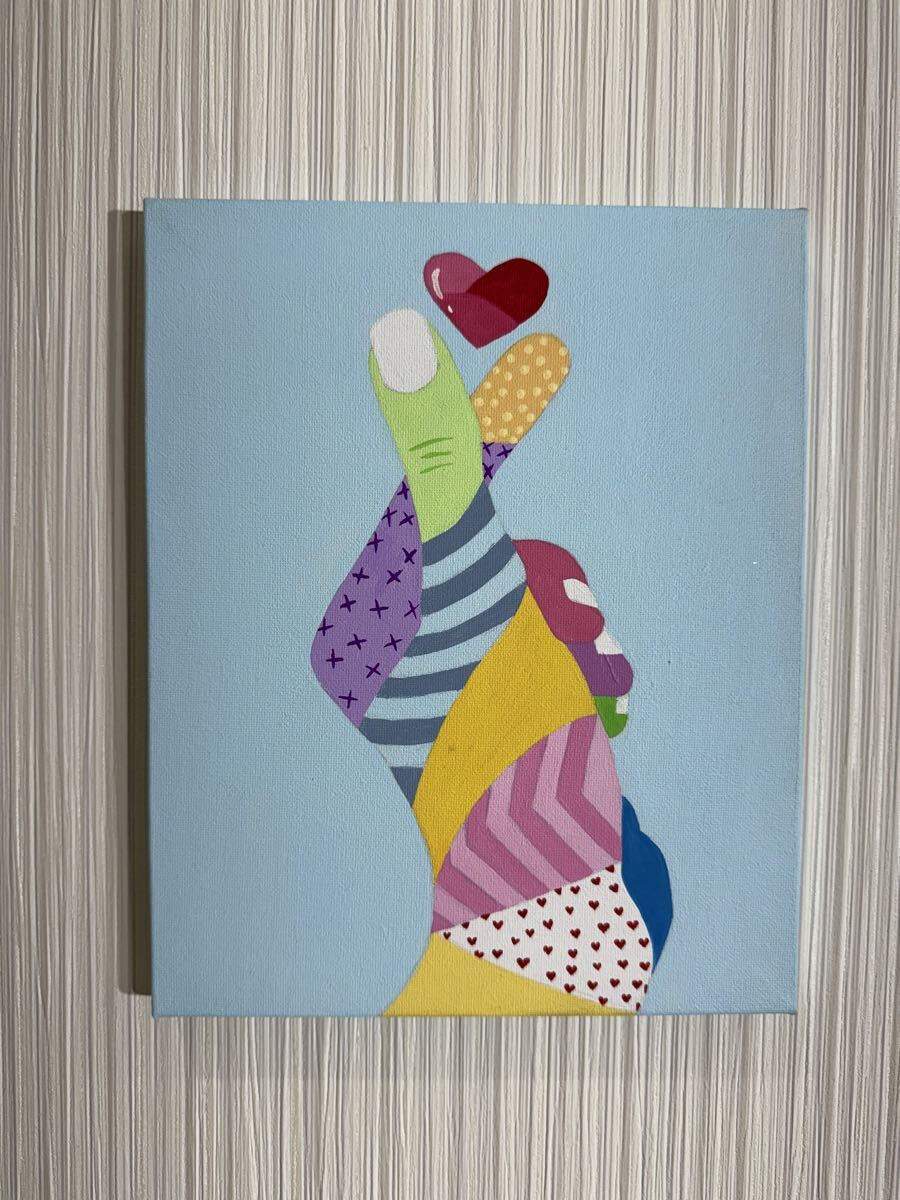 - はい、ハート アートパネル インテリアアート 絵画サイズ:たて26cm横21cm
