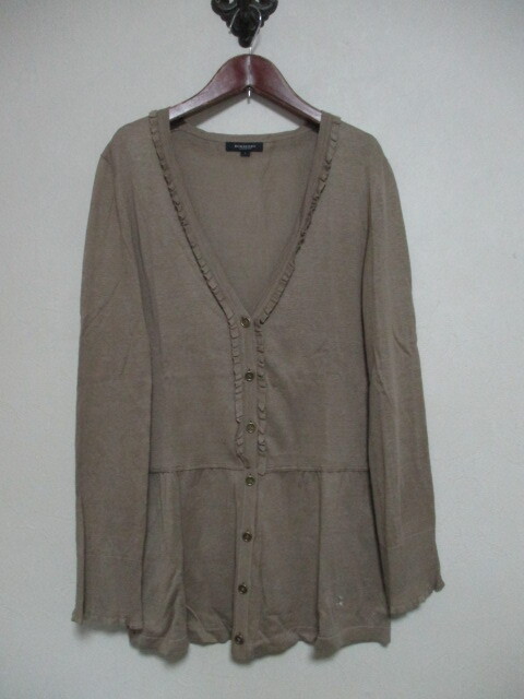 - BURBERRY バーバーリー 茶フリルVネックカーディガン(USED)90825si