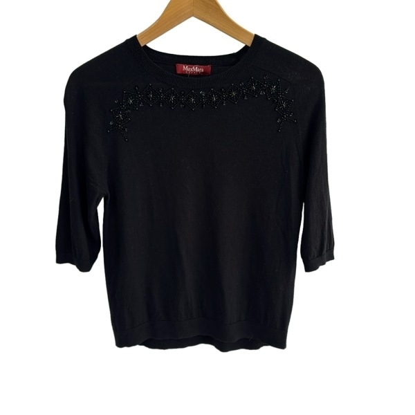 > マックスマーラスタジオ Max Mara STUDIO 七分袖カットソー サイズM - 黒 レディース ビーズ 美品 トップス