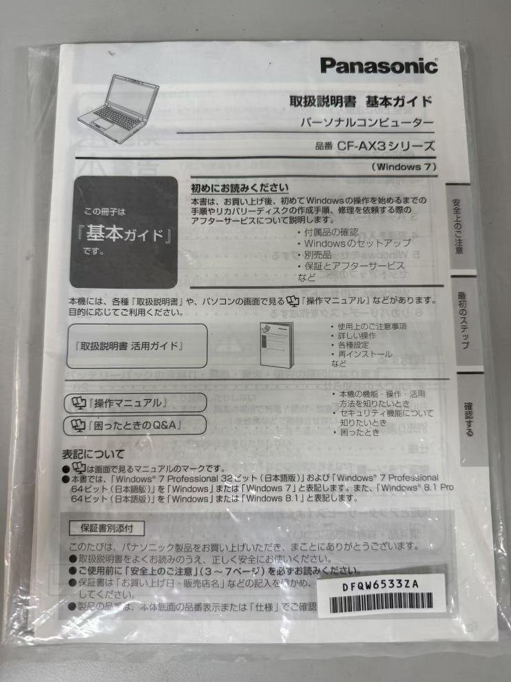 > 開封未使用品 Panasonic CF-AX3 ◆[取扱説明書]Windows7