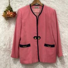 - ★ルーバン★ノーカラージャケット 金ボタン 【M】ピンク 長袖ヴィンテージ風
