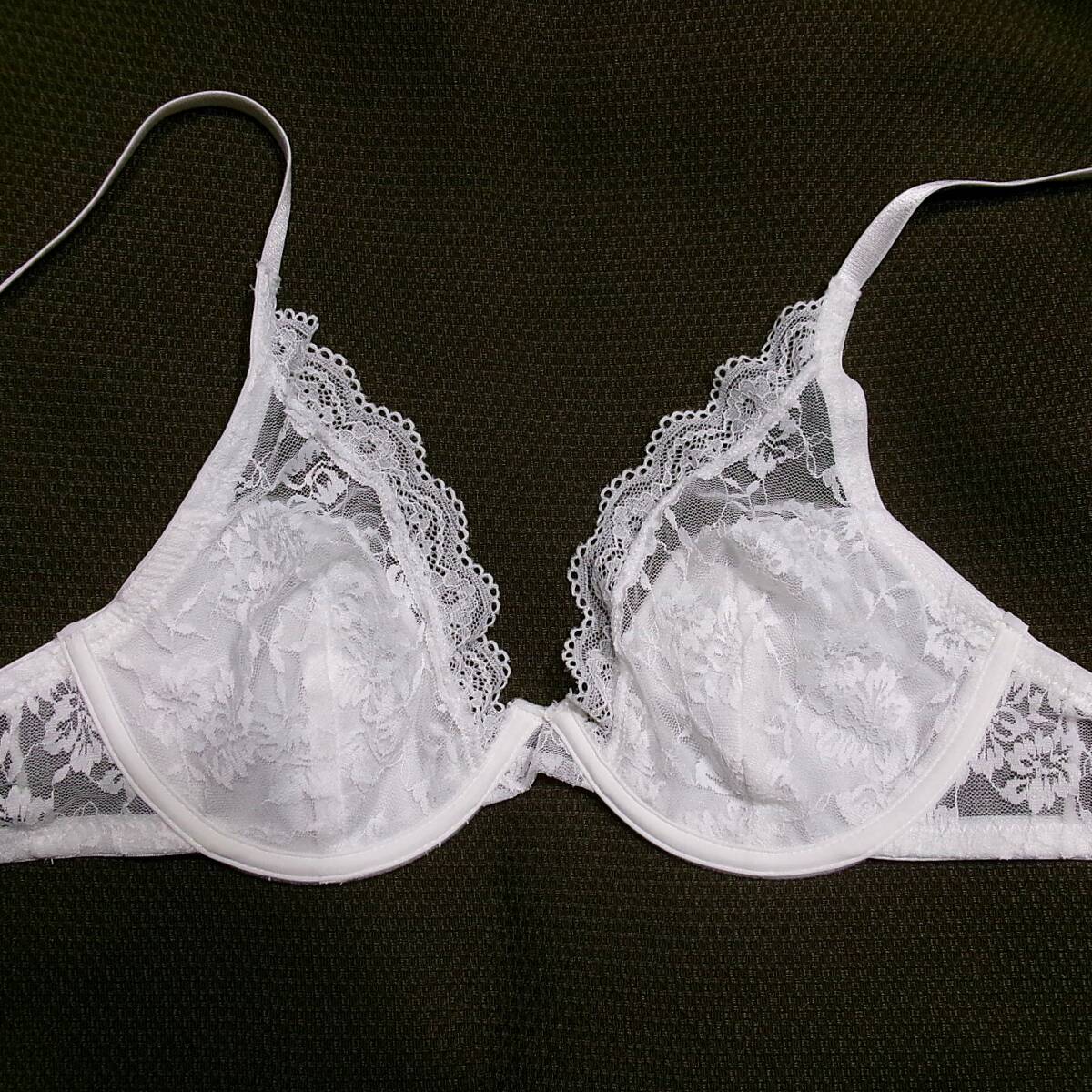 - 【新品】XLサイズ ワイヤー入り パッドなし セミシアーブラジャー★215m.ホワイト純白 花柄ソフトストレッチレースブラ E80,D85