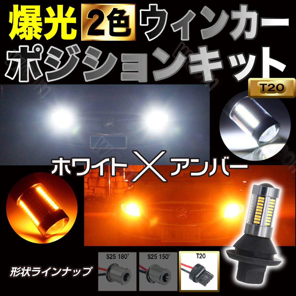 > 爆光 ウインカー ポジションキット ホワイト アンバー T20 ピンチ部違い 2色 ハイフラ防止抵抗付 66連 高輝度 汎用 新品