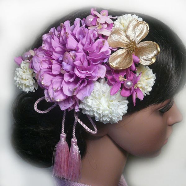 - 髪飾り 成人式 卒業式 結婚式 花 ラメダリアroと紫陽花房付 振袖 袴 浴衣 和装 着物 かんざし(1)(2)