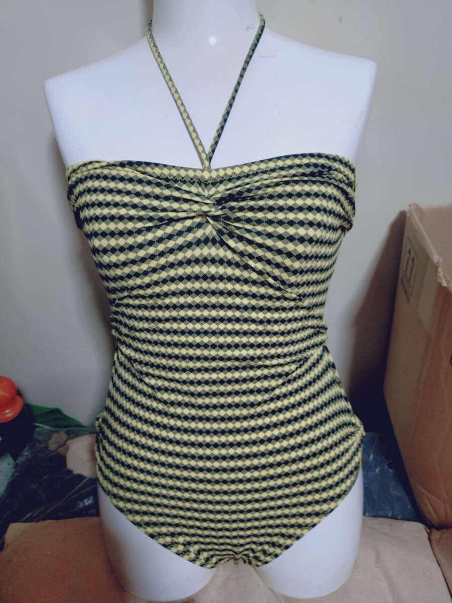 - M4530◆ANON CLUB◆セレブなイエロー&ブラックワンピース水着◆9М