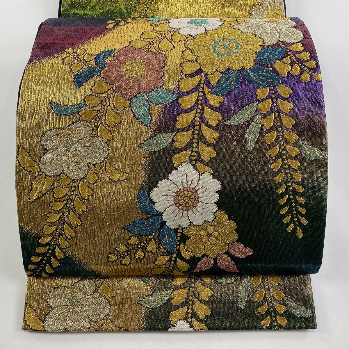 - 袋帯 美品 秀品 王朝辻ヶ花 金糸 箔 青緑 六通 正絹 【中古】