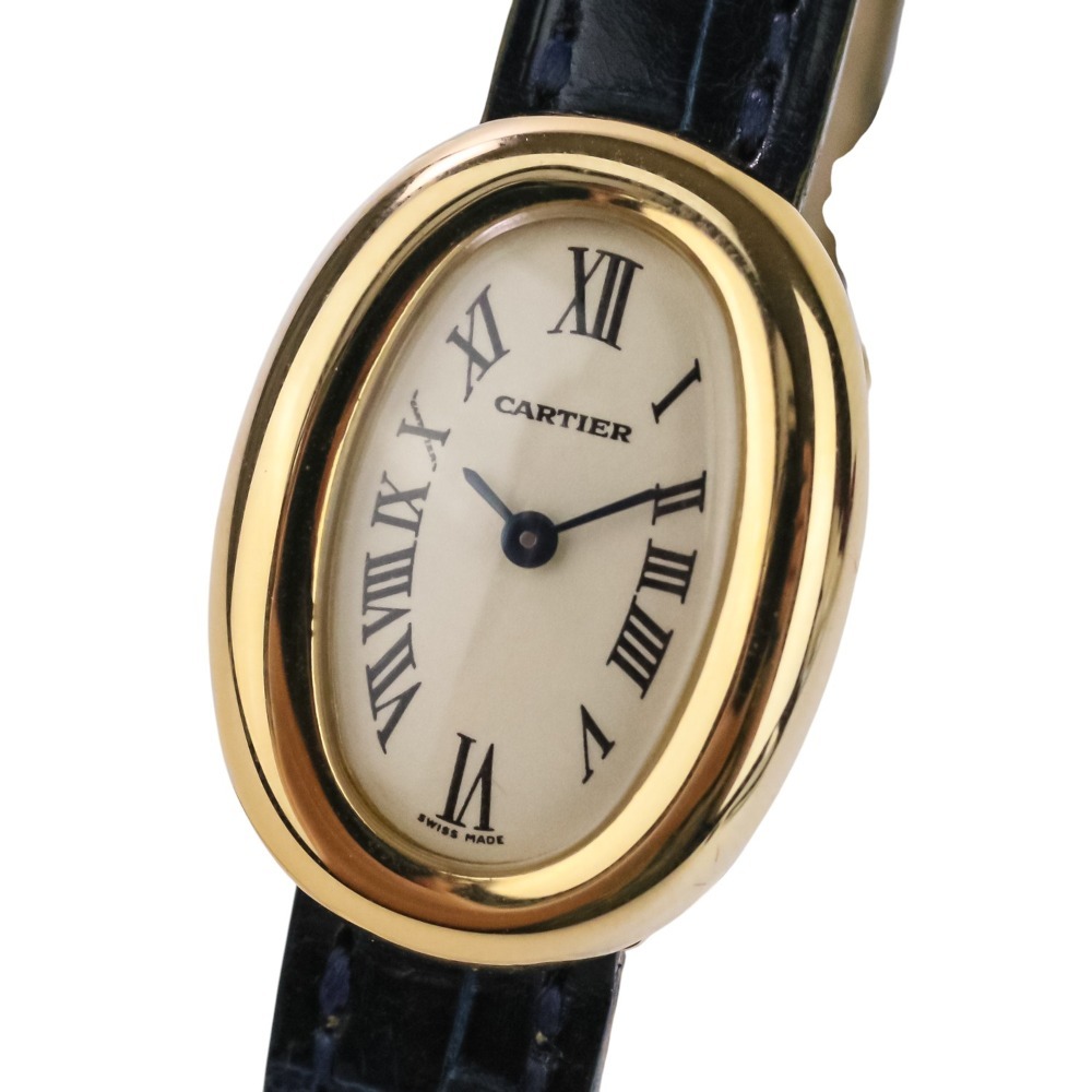 > 美品 Cartier カルティエ ミニ ベニュワール レデースウォッチ 腕時計 クォーツ W1510956 白文字盤 750 K18YG 可動品 ゴールド