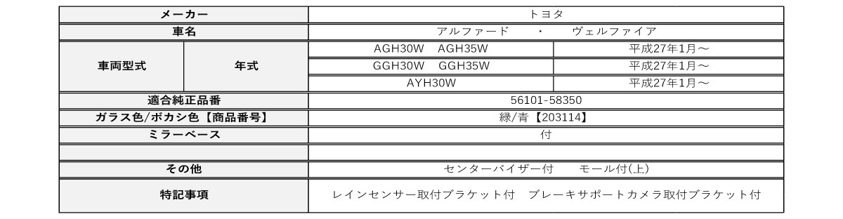 - 5◇新品◇UV&IRカット断熱フロントガラス◇ヴェルファイア AGH30W AGH35W GGH30W GGH35W AYH30W レインセンサー TSSカメラ ボカシ青 203114