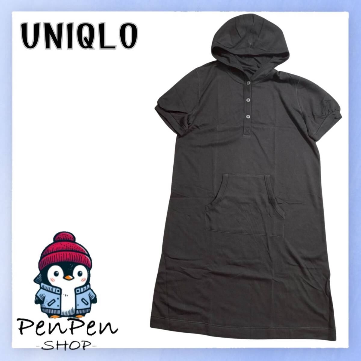 - 新品 未使用 UNIQLO ユニクロ レディース ワンピース 半袖 フード付き スウェットパーカーワンピ ブラック XLサイズ LL