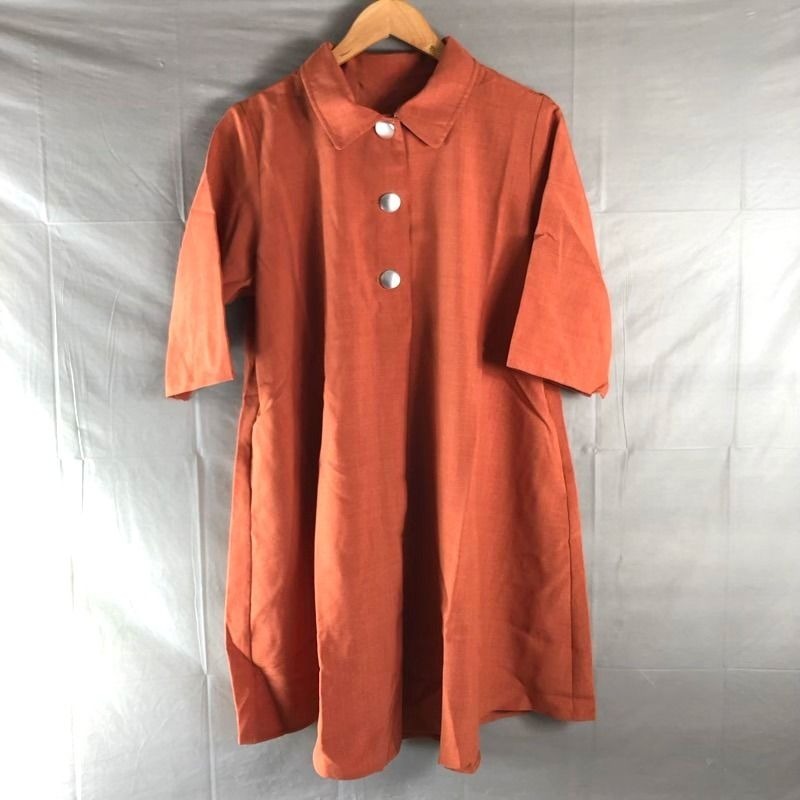 - プロバドール Provador ワンピース タグ付き シルバーボタン フレアー 7分袖 オレンジ系 くすみオレンジ Lサイズ 2025082800056