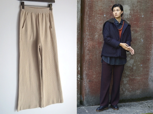 - よそおい掲載同型 Pallas Palace パラスパレス 2023AW 12Gストライプニット コットンリブニット ワイドパンツ 0 ベージュ