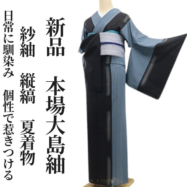 - tomihisa 新品 紗紬 縦縞 夏着物 正絹 仕付け糸付”日常に馴染み、個性で惹きつける”本場大島紬 6770