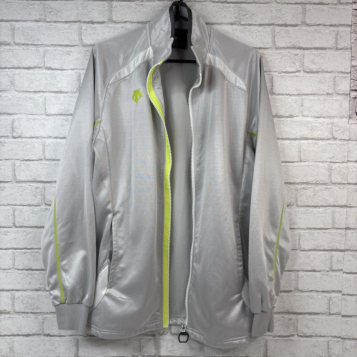> DESCENTE デサント ジャージ ジャケット DAT-1914 Mサイズ シルバー×イエローライン ジップアップ 長袖