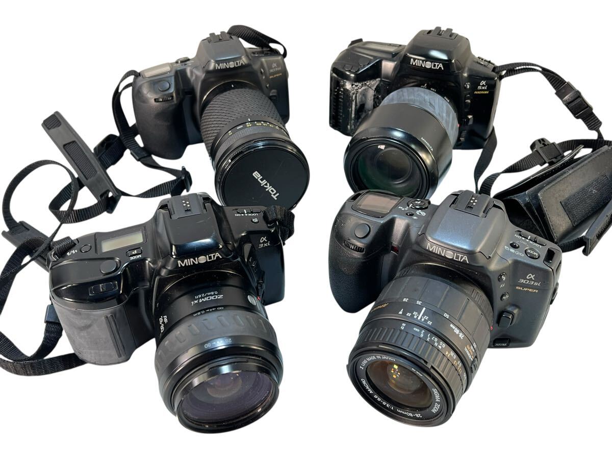 - ◆まとめ売り MINOLTA ミノルタ フィルム一眼レフカメラ 4点 セット カメラ フィルムカメラ ボディ 一眼レンズ レンズ 現状品 管理KA383