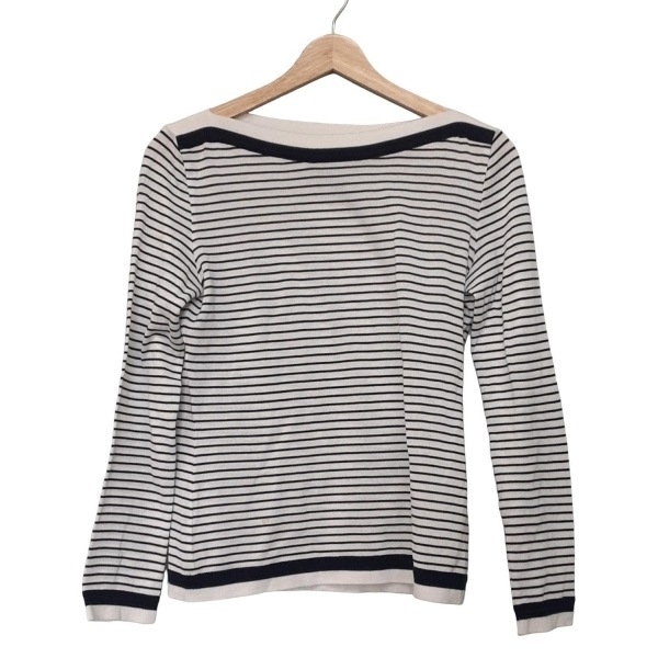 > マックスマーラ Max Mara 長袖セーター/ニット サイズJ(M) - 白×ネイビー レディース クルーネック/ボーダー 美品 トップス