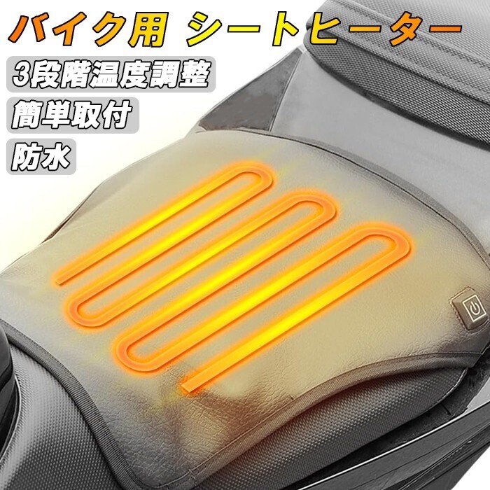 - バイク用 シートヒーター 12V 3段階調整 温度調整 汎用 防水 後付け 簡単取付 暖かい 寒さ対策 冬 電熱シート