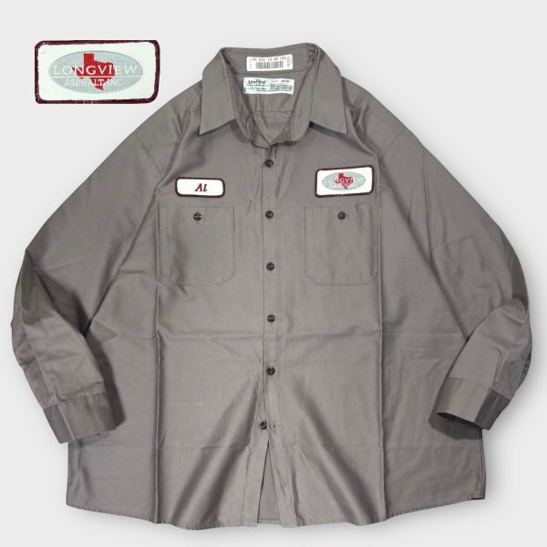 > ★BIGサイズ★LONGVIEWロゴワッペン★Uni First 長袖ワークシャツ sizeXXL相当 アメリカ 古着 クリーニング プレス済み 2502