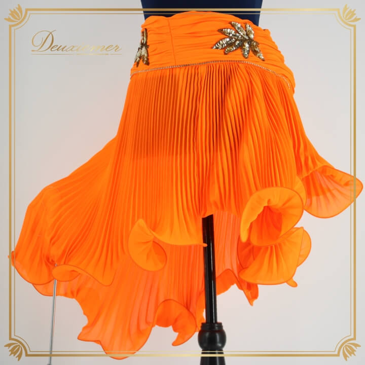 - 社交ダンス 衣装 スタンダード スカート レッスンウェア レディース オールシーズン オレンジ系 蛍光 SEKINE セキネ